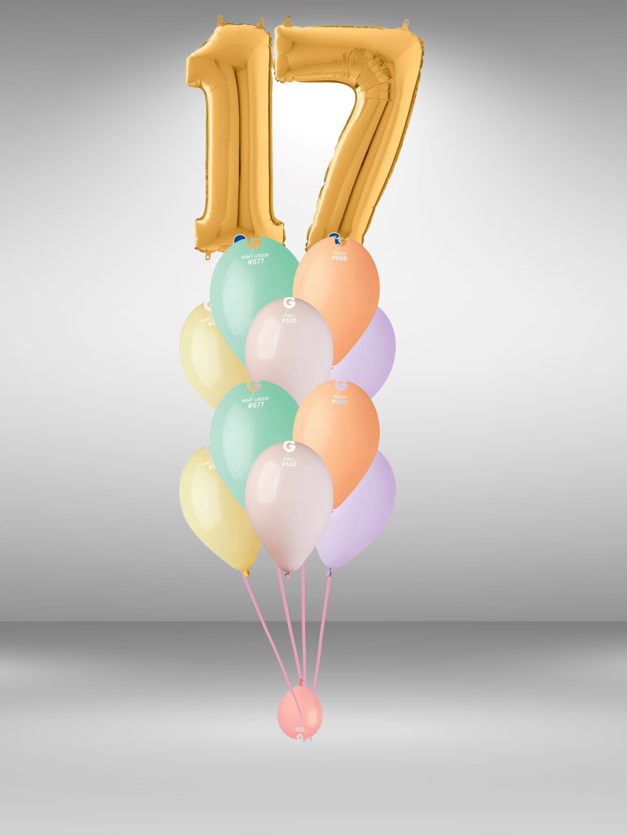 Σύνθεση με Αριθμό & Μπαλόνια Ήλιου Κάντε τη γιορτή σας αξέχαστη με μια εντυπωσιακή σύνθεση μπαλονιών! Το σετ περιλαμβάνει έναν μεγάλο αριθμό foil και 10 μπαλόνια λάτεξ παστέλ με ήλιον. Ιδανική επιλογή για γενέθλια, πάρτι και κάθε ξεχωριστή στιγμή. ✨ Extra φροντίδα: Στα μπαλόνια λάτεξ χρησιμοποιούμε ειδικό συντηρητικό υγρό για μεγαλύτερη διάρκεια αιώρησης, ώστε η σύνθεσή σας να μείνει όμορφη για περισσότερες ώρες.